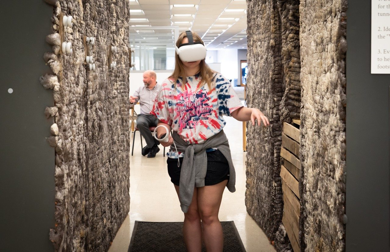 Note. A student explores the Vauquois experience which blends the virtual and physical in one exhibit.