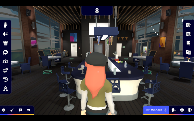 This design project utilized desktop-based VR Immerse (https://www.immerse.online/), a specialized VR application explicitly designed for real-time language teaching and learning. The Immerse application functions as a virtual learning experience platform, facilitating teacher-led, communicative, task- or problem-based activities within contextually relevant virtual settings for language learning, practice, or skill development (Kern, 2021). The Immerse application provides users with access to more than 30 distinct and highly interactive environments, such as homes, restaurants, or art studios, allowing students to physically manipulate various objects and collaborate with peers.
