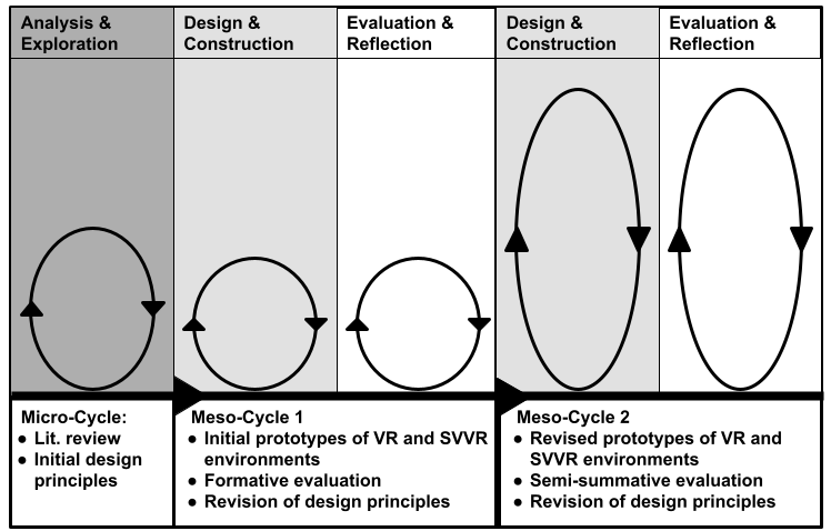 Further, the absence of a standardized procedure for assessing the generalization of skills in XR (Khowaja et al. in 2020) necessitated we devise novel methods for evaluating generalization in Virtuoso (Schmidt et al., 2023a). Although our approach was fraught with unprecedented challenges in terms of design, technology, and user diversity, our results were predominantly positive, ultimately representing a pioneering step in XR applications for autistic individuals and thereby laying a fresh foundation for future innovations in this research area. In part, such positive outcomes were made possible due to our adoption of a DBR methodological approach, which we describe in the following section.