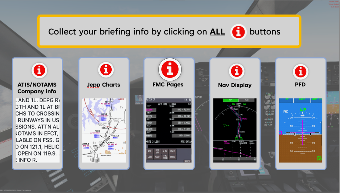 After investigating all this information the first time, participants created a briefing list of the three most important and next two most important items for their fellow pilot to know. They were then told ATC had communicated a change for their flight. Participants were allowed to review updated information and then were asked to list impacts the change would have on their flight.