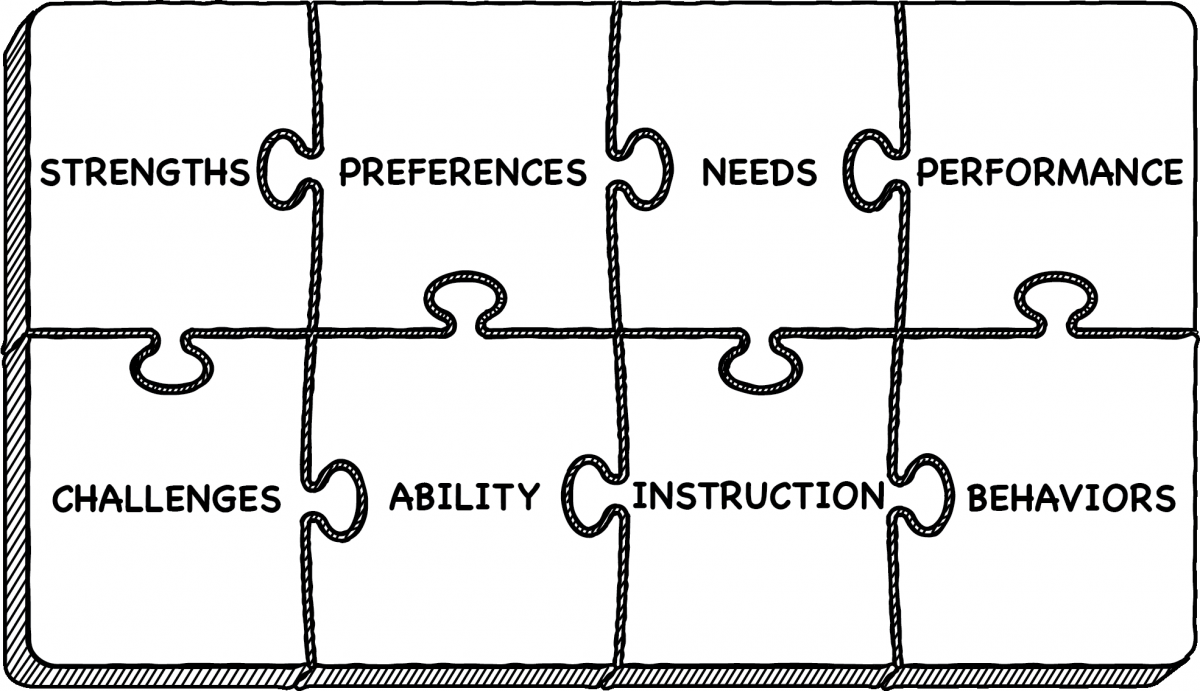 Collecting data is just the beginning. Applying the data to improve performance is part of the art of teaching. As with a single piece in a jigsaw puzzle, each piece of information cannot be interpreted in isolation. The collection of data points reveals a more complete picture which includes student ability, strengths, challenges, behaviors, and preferences to understand the connections between performance, instruction, and student needs. The meaning of each piece of data is revealed when it is appropriately connected to the whole picture. When teachers explore multiple data points simultaneously, a clearer view of the child and solutions for learning will emerge.