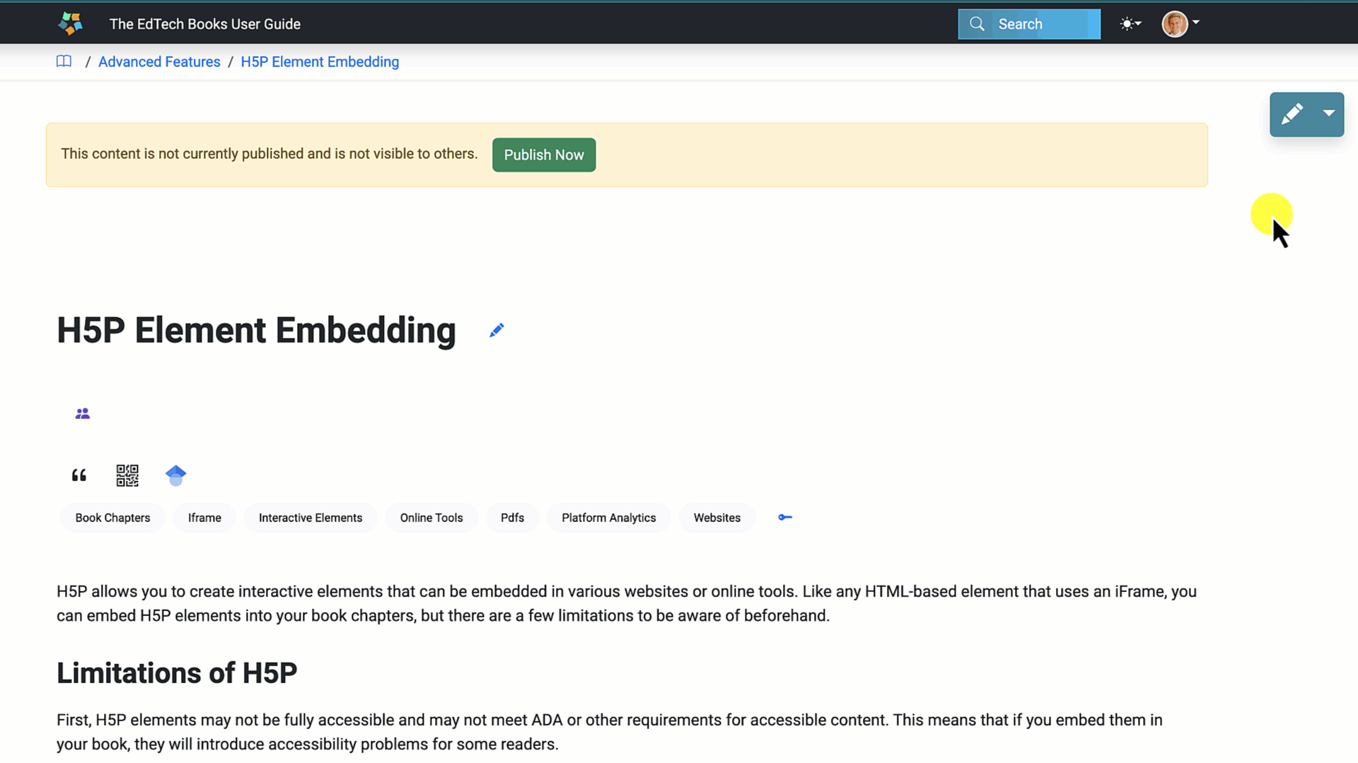 After each chapter in your book has gone through the process of ensuring quality, you are ready to publish it! There are two ways to publish an individual chapter: